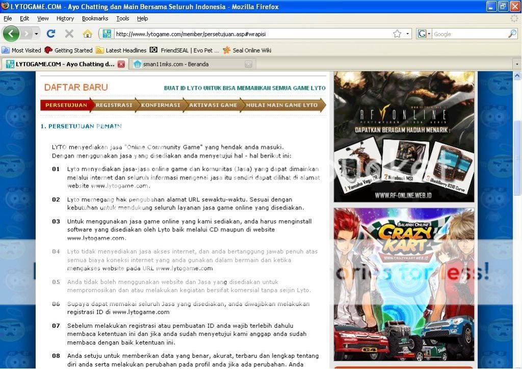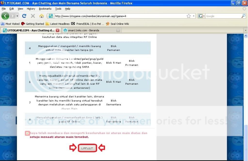 jika anda setuju dengan aturan main dalam permainan RF Online ,maka kembali beri tanda Check List pada tempat yang tersedia sebagai tanda persetujuan anda dan klik “LANJUT”…
